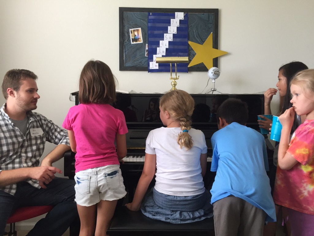 This Saturday (July 23, 2016) Leslie’s Music Studio held it’s first Playing by Ear Workshop for students in grades 1-5. Eric Newlin was our guest teacher and led students through ear training exercises and how to play piano without sheet music.