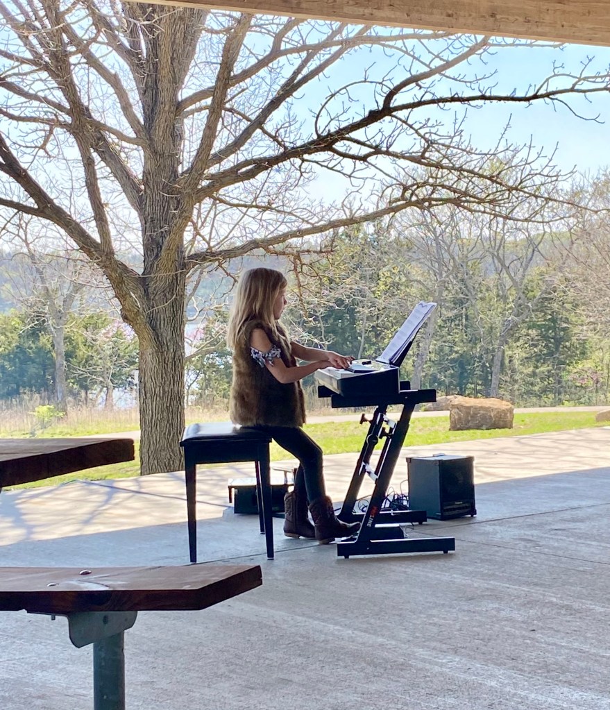 Our studio was proud to present “Piano in the Park,” an outdoor spring recital, at Lake Olathe Park on April 11th. This was a fun, low-pressure performance opportunity for students and a celebration for getting through this incredibly challenging year. Being outdoors made it possible for more students to gather together safely without masks.
