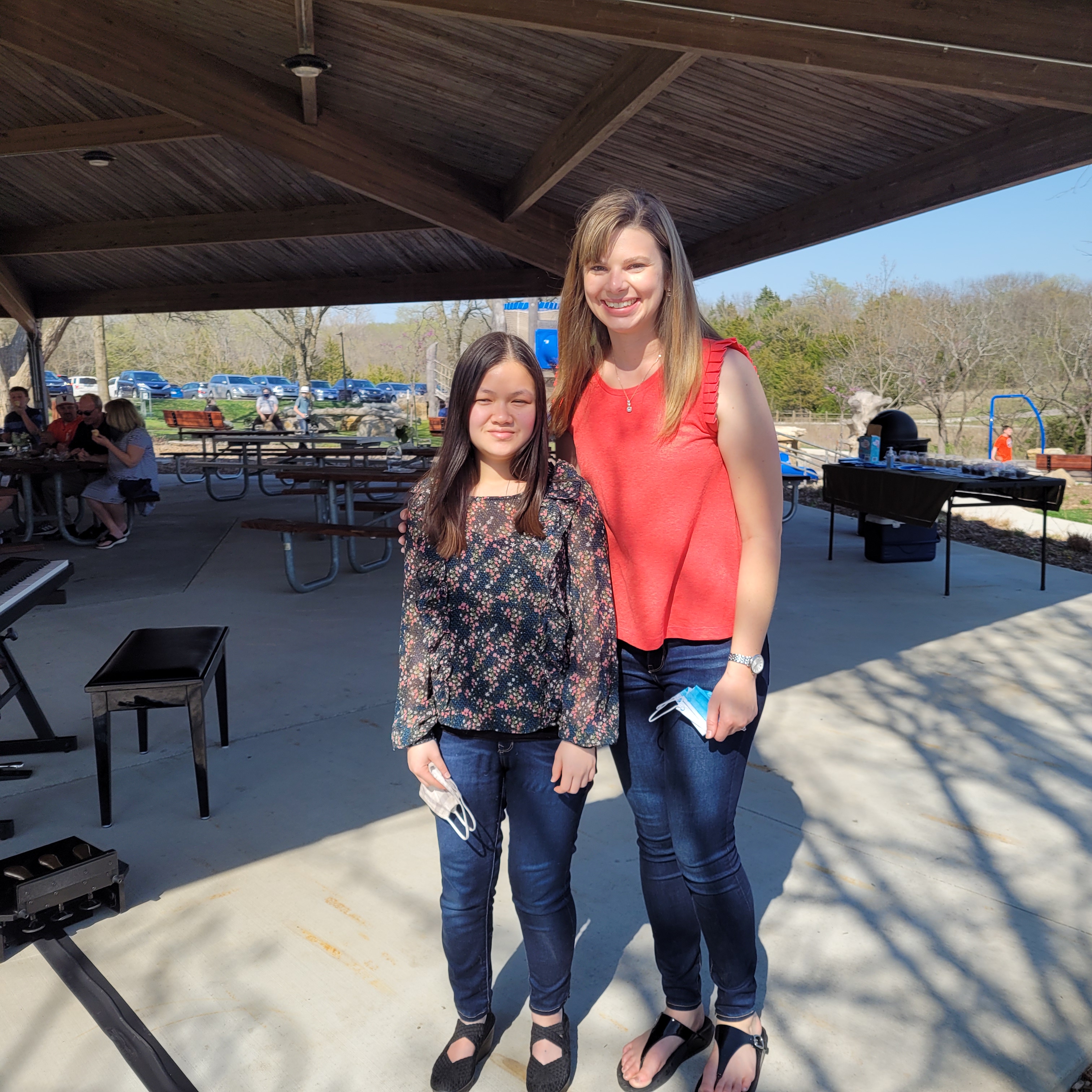 Our studio was proud to present “Piano in the Park,” an outdoor spring recital, at Lake Olathe Park on April 11th. This was a fun, low-pressure performance opportunity for students and a celebration for getting through this incredibly challenging year. Being outdoors made it possible for more students to gather together safely without masks.