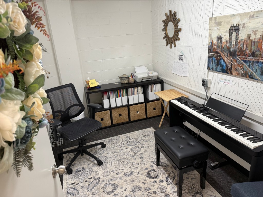 Leslie Newlin offers weekly private piano lessons for ages 6 and up at the Village Music Academy in Prairie Village. Private lessons are tailored to suit each student. A dynamic and motivating curriculum is presented at each level of study to foster meaningful and enjoyable learning for beginner, intermediate, and advanced students. The studio space is equipped with a high-end digital piano. Students have access to an extensive music library and iPad updated with the latest exciting music apps for use in lessons.